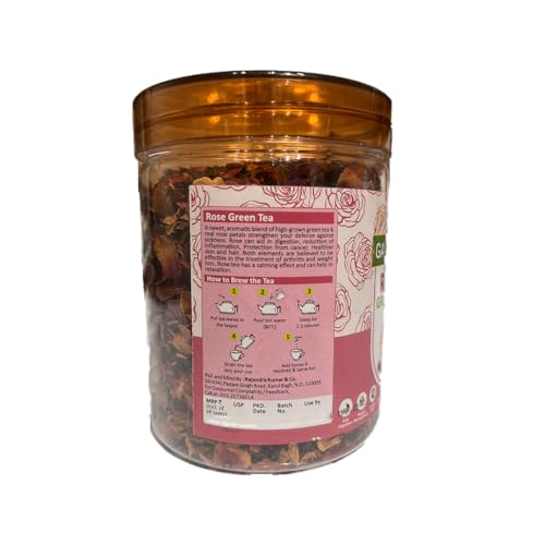 Ganpatjee Rose Green Tea 80g | Infused with Organic leaves and rose petals | Natural Flavour No added Color