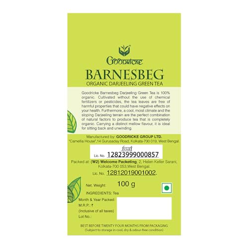 GOODRICKE Barnesbeg Green Tea is a Premium Darjeeling tea available in a 100 gm pack of 5.
