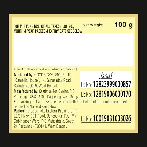 GOODRICKE Castleton Vintage Darjeeling Tea - 100gm (Pack of 1) | Single Estate Whole Leaf Chai | 100% Organic & Natural Loose Leaves Tea | Premium Black Tea with Rich Taste & Aroma