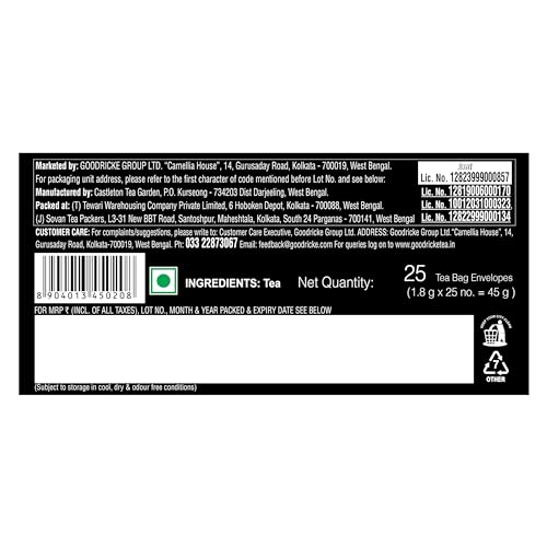 GOODRICKE Castleton Vintage Darjeeling Tea Bags - 25 Teabags (Pack of 1) | Single Estate Whole Leaf Chai | 100% Organic & Natural Tea | Premium Black Tea with Rich Taste & Aroma