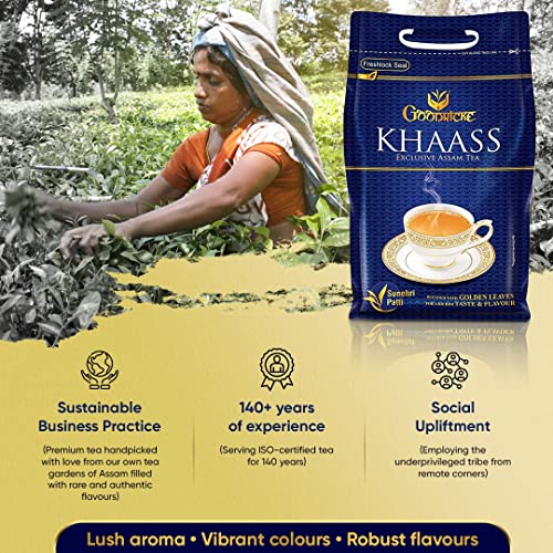 Goodricke Khaass truly lives up to its name. Gently hand-picked from select tea bushes and specially rolled to perfection this exclusive blend contains exquisite long Golden leaves (Sunehri Patti) which lend a unique and rare flavor with every cup. This coupled with Goodricke's 140 years of tea-making expertise makes Khaass a blend which outshines all others.