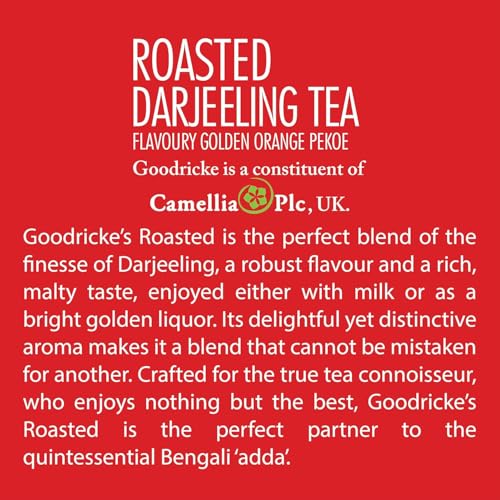 Goodricke's Roasted is the perfect blend of the finesse of Darjeeling a robust flavor and a rich malty taste enjoyed either with milk or as a bright golden liquor. Its delightful yet distinctive aroma makes it a blend that cannot be mistaken for another. Crafted for the true tea connoisseur who enjoys nothing but the best Goodricke's Roasted is the perfect partner to the quintessential Bengali “adda”. Best tasted without milk.
