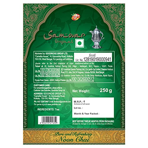 GOODRICKE Samovar Original Tea is a 250-gram package of long green tea leaves perfect for authentic Kashmiri Noon Tea Pink Tea and Sheer Chai.