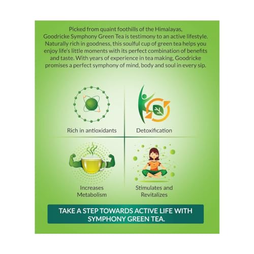 Picked from quaint foothills of the Himalayas Goodricke Symphony Green Tea is testimony to an active lifestyle. Naturally rich in goodness this soulful cup of green tea helps you enjoy life's little moments with its perfect combination of benefits and taste. With years of experience in tea making Goodricke promises a perfect symphony of mind body and soul in every sip.