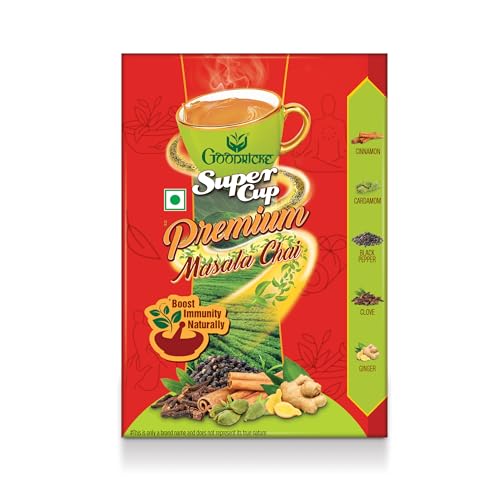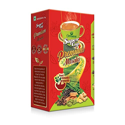 Goodricke Khaass truly lives up to its name. Gently hand-picked from select tea bushes and specially rolled to perfection this exclusive blend contains exquisite long Golden leaves (Sunehri Patti) which lend a unique and rare flavor with every cup. This coupled with Goodricke's 140 years of tea-making expertise makes Khaass a blend which outshines all others. Premium Chai Discover the real goodness of 100% natural spices in each sip of Super Cup Premium Masala Tea. The very spices known for their immunity boosting benefits in Ayurveda since centuries now come together in your cup of tea. So get ready to experience cardamom clove black pepper cinnamon and ginger in one blend for strong taste and rich flavor.