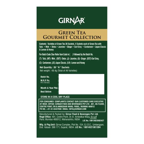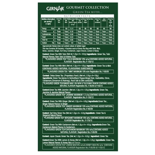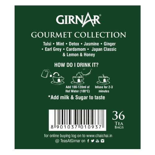 4 Tea Bags of each: Lemon & Honey Japan Classic Cardamom Earl Grey Jasmine Ginger Detox Tulsi & Mint Green Tea.