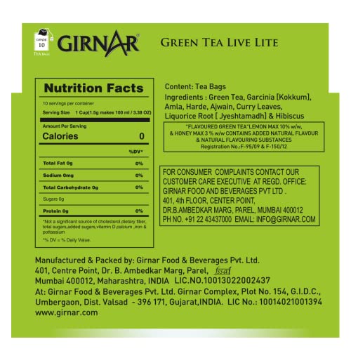 Green Tea Garcinia Amla Harde Ajwain Curry Leaves Lemon Flavour Liquorice Root Hibiscus & Honey Flavour.