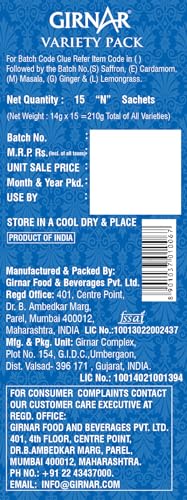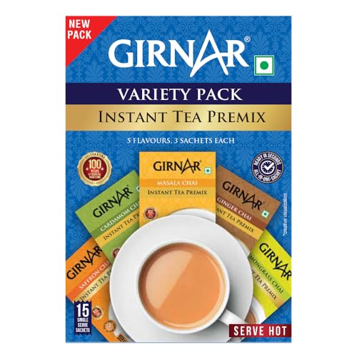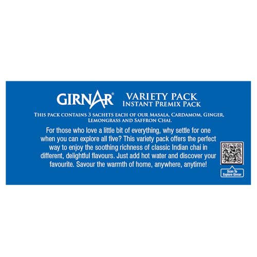 Spoilt for choice? Indulge till your heartâs content! After all variety is the spice of life. And when you have a variety of Pre-mixed spiced chais to choose from why stick to one? This pack contains a premix of Strong Desi Chai with multiple partners to complement; for those times when you canât pick an all-time favourite. All this without the brewing wait. Or numerous ingredients to accumulate. Girnarâs Variety Chai Premixes are ready before you contemplate! 4 am or 4 pm In the valley or amidst the clouds Sailing or Flying Homely cuddles or solo travel: ghar-jaisi Chai can now be made just by adding hot water to the premix! No wonder coming back home is not necessary to feel at home.