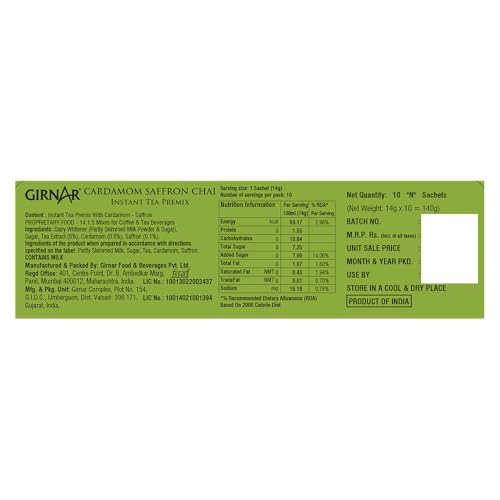 Girnar brings you an exotic delicate blend rich with saffron petals & basking in the freshness of cardamoms. Enjoy the ease of making the tea infused with the golden touch of saffron & the lingering fragrance of cardamom.