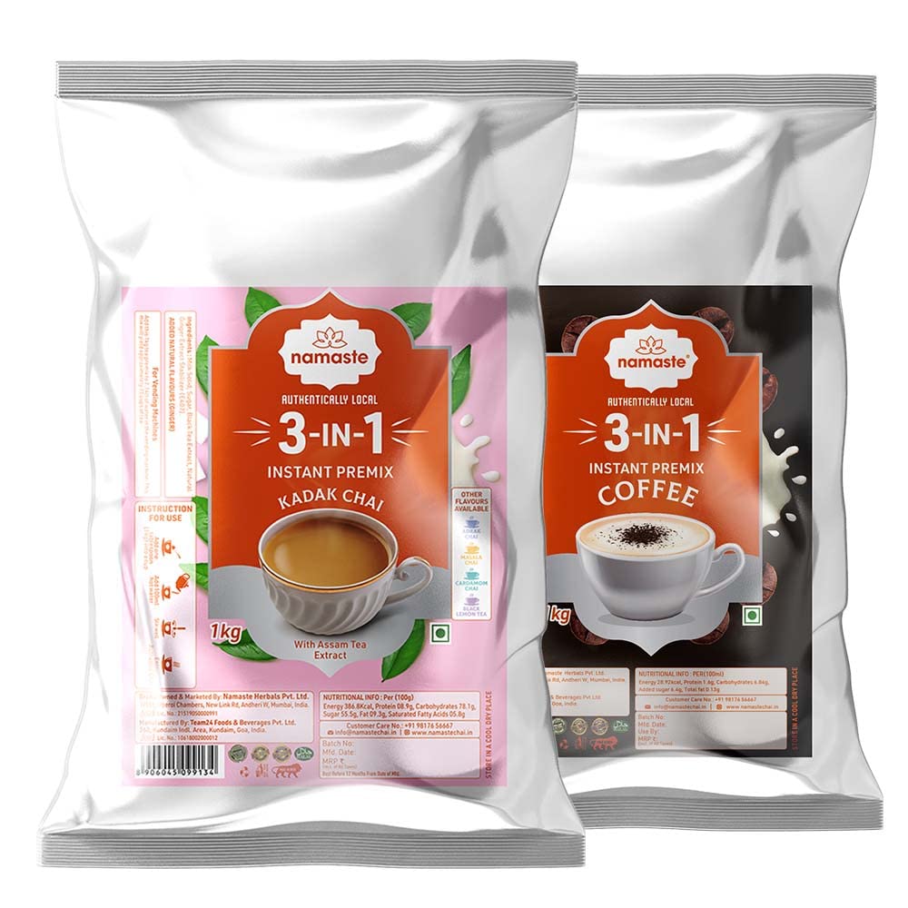 Namaste Chai 3 in 1 Instant Premix Combo | Kadak Chai Instant Premix | Instant Chai Coffee Premix | Pack of 2 (1kg each)