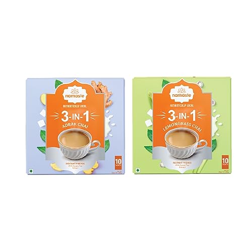 Namaste Chai Adrak And Lemongrass Instant Tea Premix Combo Pack With Milk And Sugar Readymade Tea Sachets 20 Sachets (22g x 20 SachetsPowder)