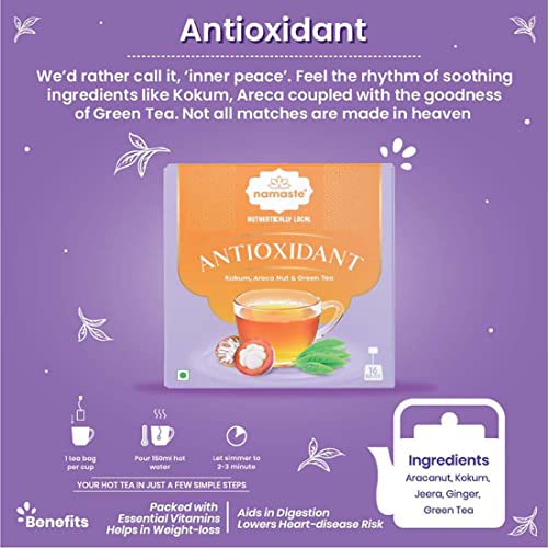 Namaste Chai Antioxidant Herbal Green Tea | Caffeine Free | Natural Herbs | 16 Sachets Dip Bag