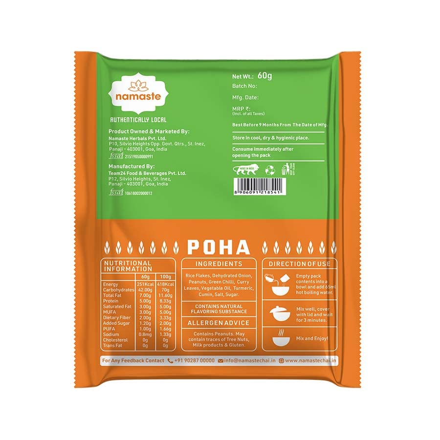 Namaste Chai Breakfast Poha Instant Poha Mix Ready To Eat in 3 Mins 60g X 12 Pouch
