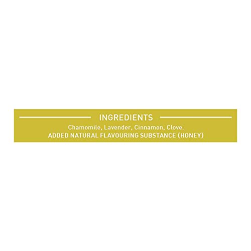 Ingredients: Chamomile Lavender Cinnamon Clove. Added Natural Flavouring Substance i.e. Honey
