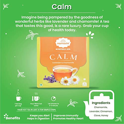 Namaste Chai Calming Herbal Tea | Caffeine Free Natural Herbs | 16 Sachets Dip Bag