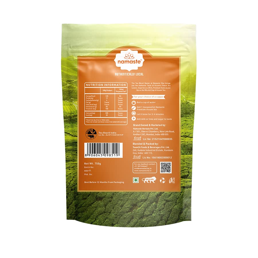 Brewing Instructions: Boil a cup of water. Add 1 Teaspoonful of Namaste Premium Assam Tea. Let it brew for 3-4 minutes. Add milk or lime & sugar to taste