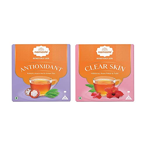Namaste Chai Herbal Green Tea Combo Pack of Antioxidant Herbal Green Tea & Clear Skin Herbal Green Tea | Caffeine Free with Natural Herbs â Pack of 2 (16 Dip Bags Each)