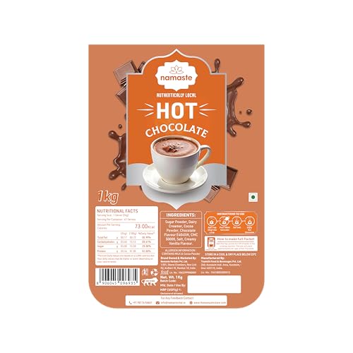 Namaste Chai Hot Chocolate Powder is your go-to indulgence for a thick rich and irresistibly chocolatey drink. Crafted with premium cocoa powder and a blend of creamy vanilla flavor this hot chocolate mix offers a perfectly balanced smooth and velvety texture. Just add hot milk stir and enjoy a luxurious café-style hot chocolate experience at home. Vegan and gluten-free it's a treat you can savor without compromise. Each 1KG pack serves 41 cups providing warmth comfort and pure chocolate bliss in every sip. Whether itâs for a cozy evening by the fireplace or a delightful morning treat Namaste Chai Hot Chocolate Powder promises a moment of indulgence like no other.