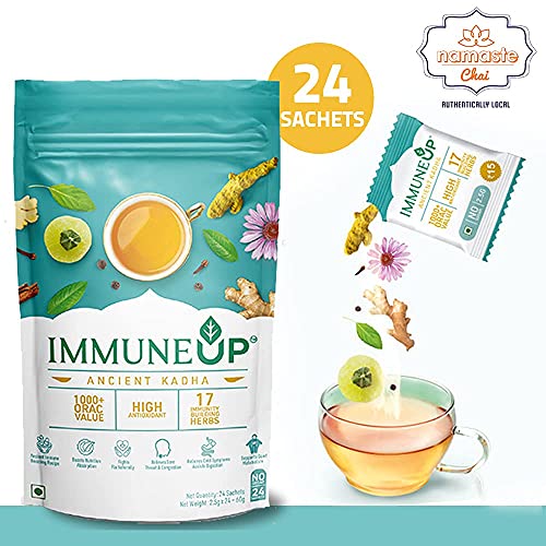 Namaste Chai - Immuneup - Immunity Booster | Herbal Tea | Ancient Indian Ayurvedic Kadha 17 Natural Herbs All in One High Antioxidant Ready Mix Powder (2.5gm x 24 Sachets)