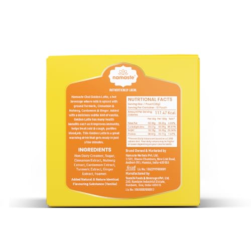 Namaste Chai Instant Premix Golden Turmeric Latte Spiced Turmeric Milk With Cinnamon Ginger and Nutmeg 10 Sachets (10x28g)