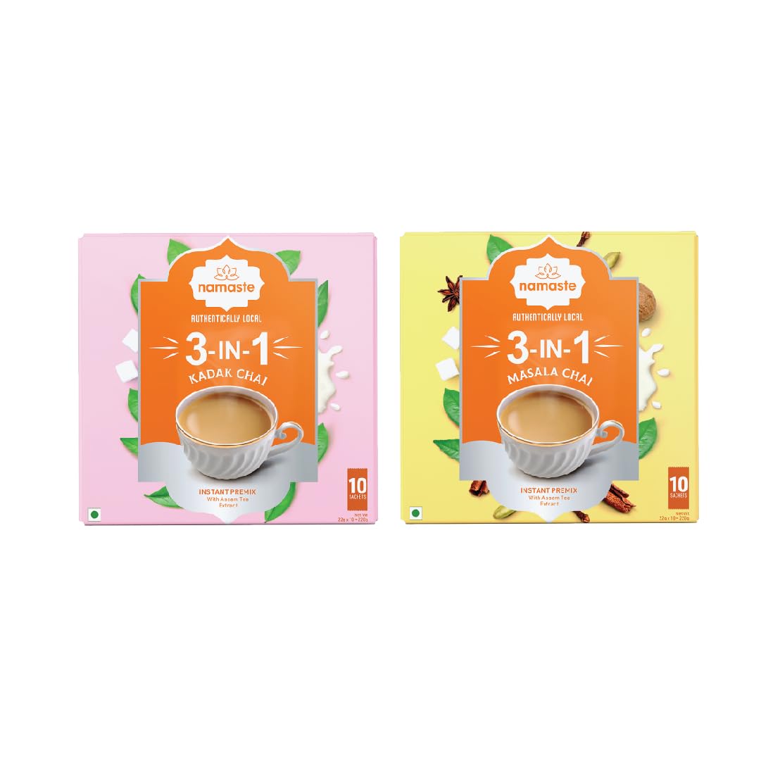 Namaste Chai Instant Tea Premix Kadak and Masala Chai Readymade Tea Powder Sachets Combo Pack 20 Sachets (22g x 20 SachetsPowder)