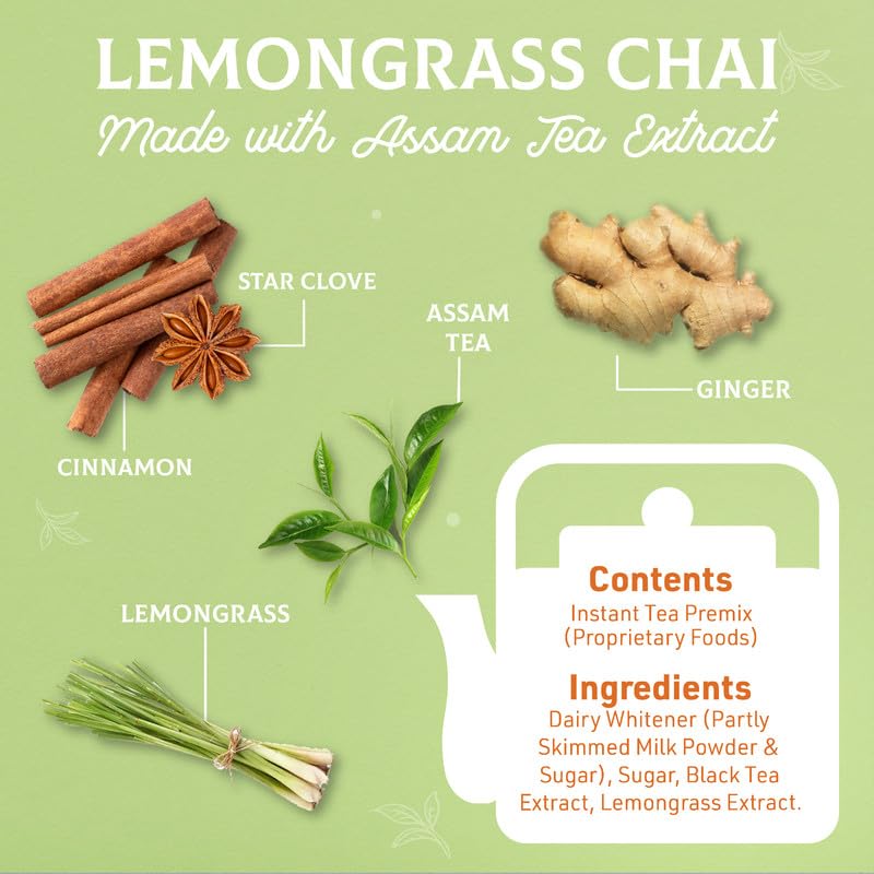 Exquisite Blend: Indulge in the harmonious blend of milk powder and natural ingradients like lemongrass for a delightful tea experience.