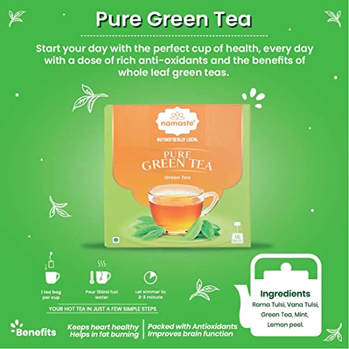 Namaste Chai Natural Herbs Pure Herbal Green Tea | Caffeine Free | 16 Sachets Dip Bag