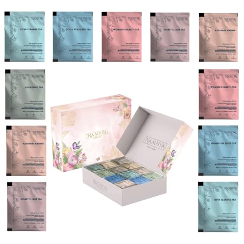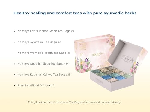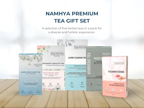 HomeGroceryBeveragesTeaNamhya Ayurvedic Tea Gift Set | Herbal Tea Gift - 5 Assorted TeaBox | Kashmiri Kahwa Liver Cleanse Ayurvedic Women's Health Good for Sleep Tea | 100% Natural & Organic in Premium Packaging