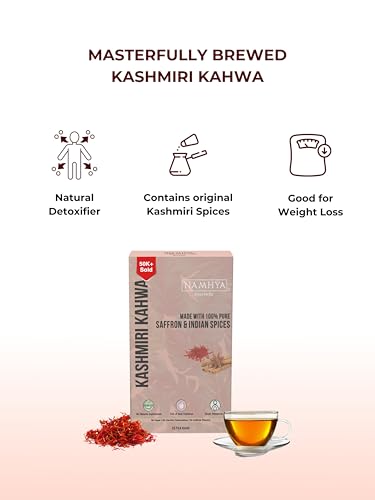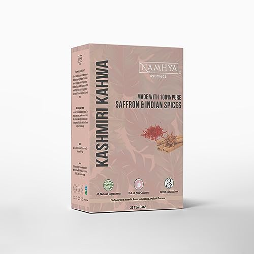 HomeGroceryBeveragesTeaNamhya Kashmiri Kahwa Tea Bags (25 Tea Bags) with Saffron Rose Petals Cinnamon & Cardamom I Boosts Immunity Helps in Digestion I Anti Inflammatory Tea I Kesar Kahwa Tea