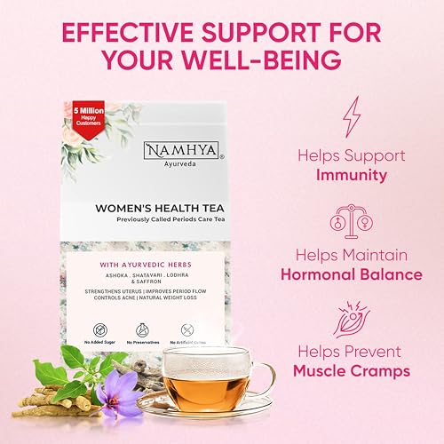 HomeGroceryBeveragesTeaNAMHYA Womens Health Tea | Herbal Tea | PCOS tea for women | Loaded with Natural Ayurvedic Herbs (Shatavari and Ashoka) for Hormonal Balance & Better Period Cycle 3.53 oz (100 Grams)