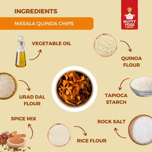 HomeGroceryBeveragesTeaNutty Yogi Gluten Free Masala Quinoa Chips Healthy Snack for Tea Time Kids High in Protein Good for Diet 100 Gm (Pack of 4) Good for Kids Healthy Alternative to Potato Chips