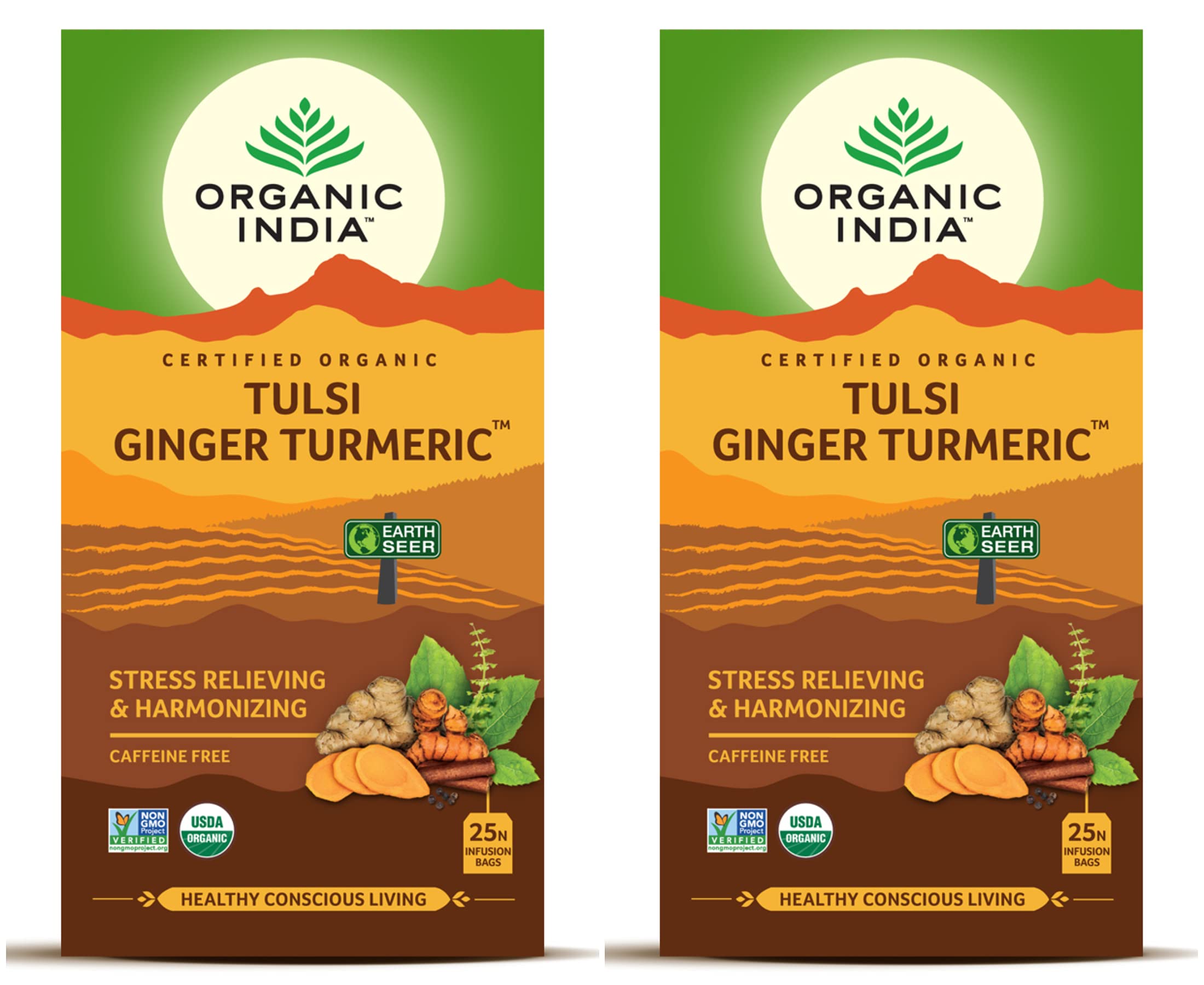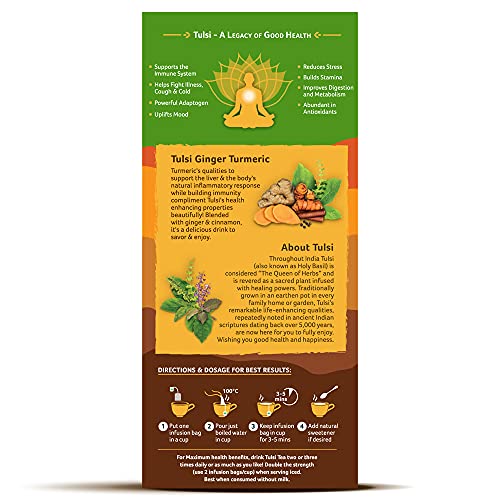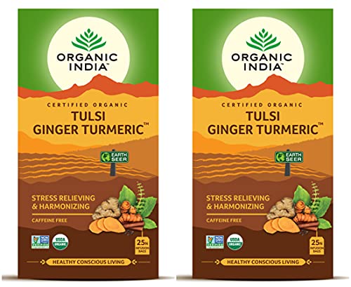 ORGANIC INDIA Tulsi Ginger Turmeric 25 Tea Bags Pack Of 2, 0.55 Pounds