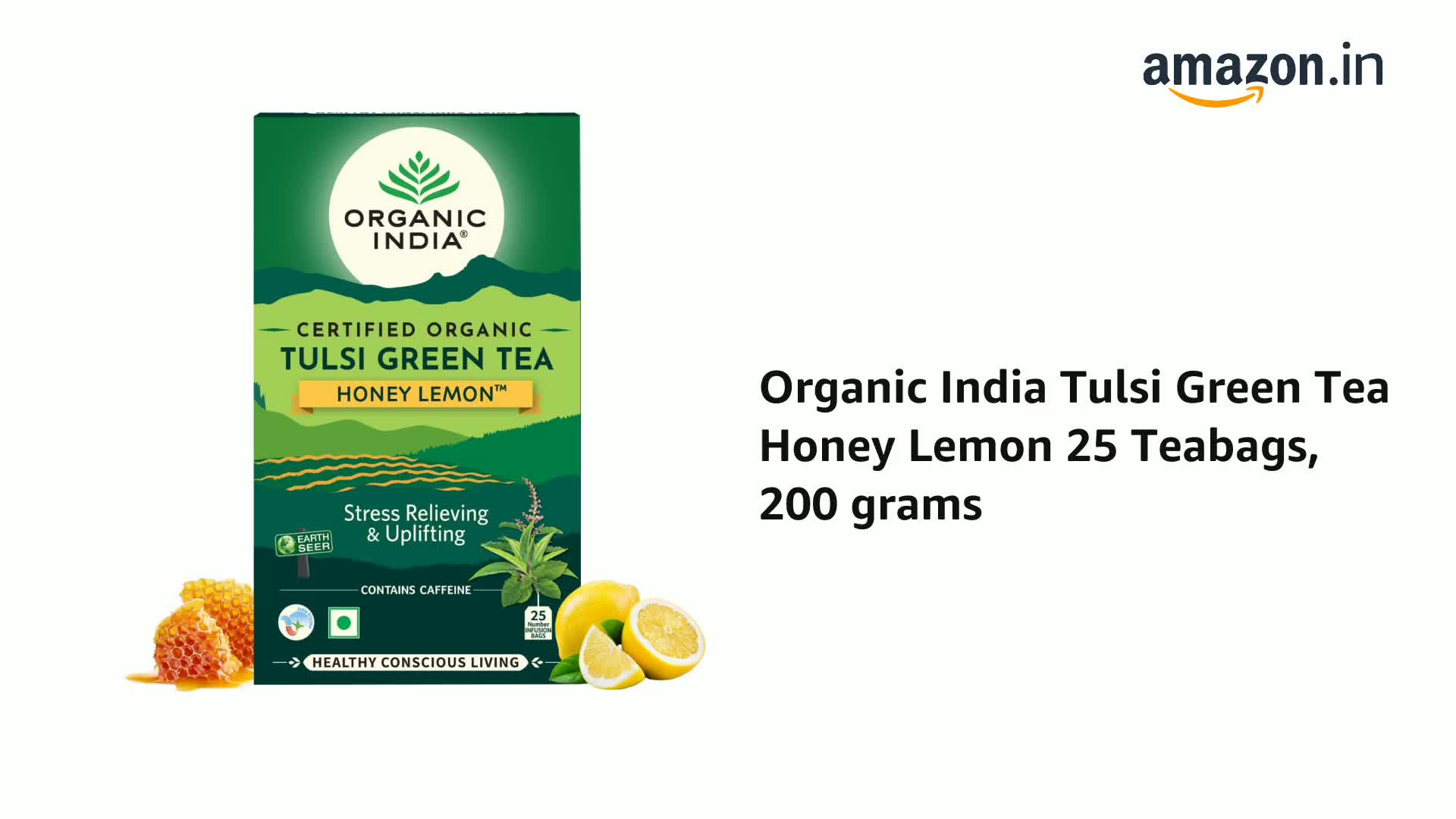 Organic India Tulsi Green Tea Honey Lemon 25 Teabags