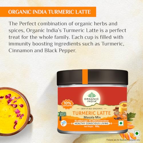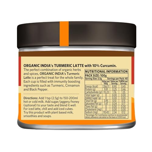 The perfect combination of organic herbs and spices Organic India's Turmeric Latte is a perfect treat for the whole familyEach cup is filled with immunity boosting ingredients such as Turmeric Cinnamon and Black Pepper.