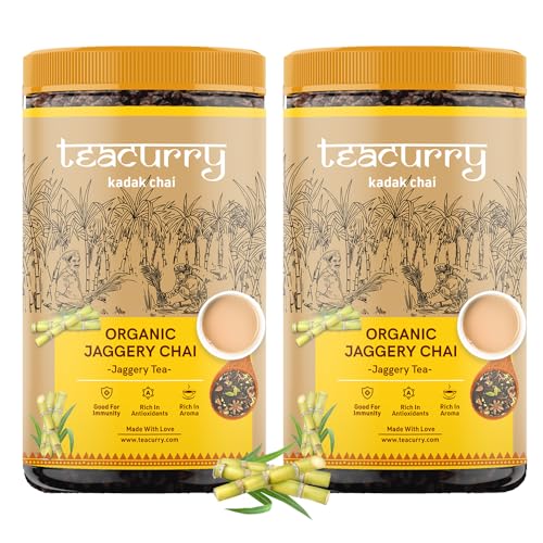Introducing our delightful Organic Jaggery Tea - a harmonious blend of the finest black tea leaves and the pure sweetness of real jaggery. Give your tea-drinking experience a delight with this 100% natural and organic Gur Chai. It has been expertly crafted for those who appreciate the goodness of gud ki chai. Our gur tea is a perfect fusion of robust black tea with the rich caramel-like notes of the best jaggery for tea. Immerse yourself in the goodness of chai with jaggery a concoction that not only tantalizes your taste buds but also supports digestion.