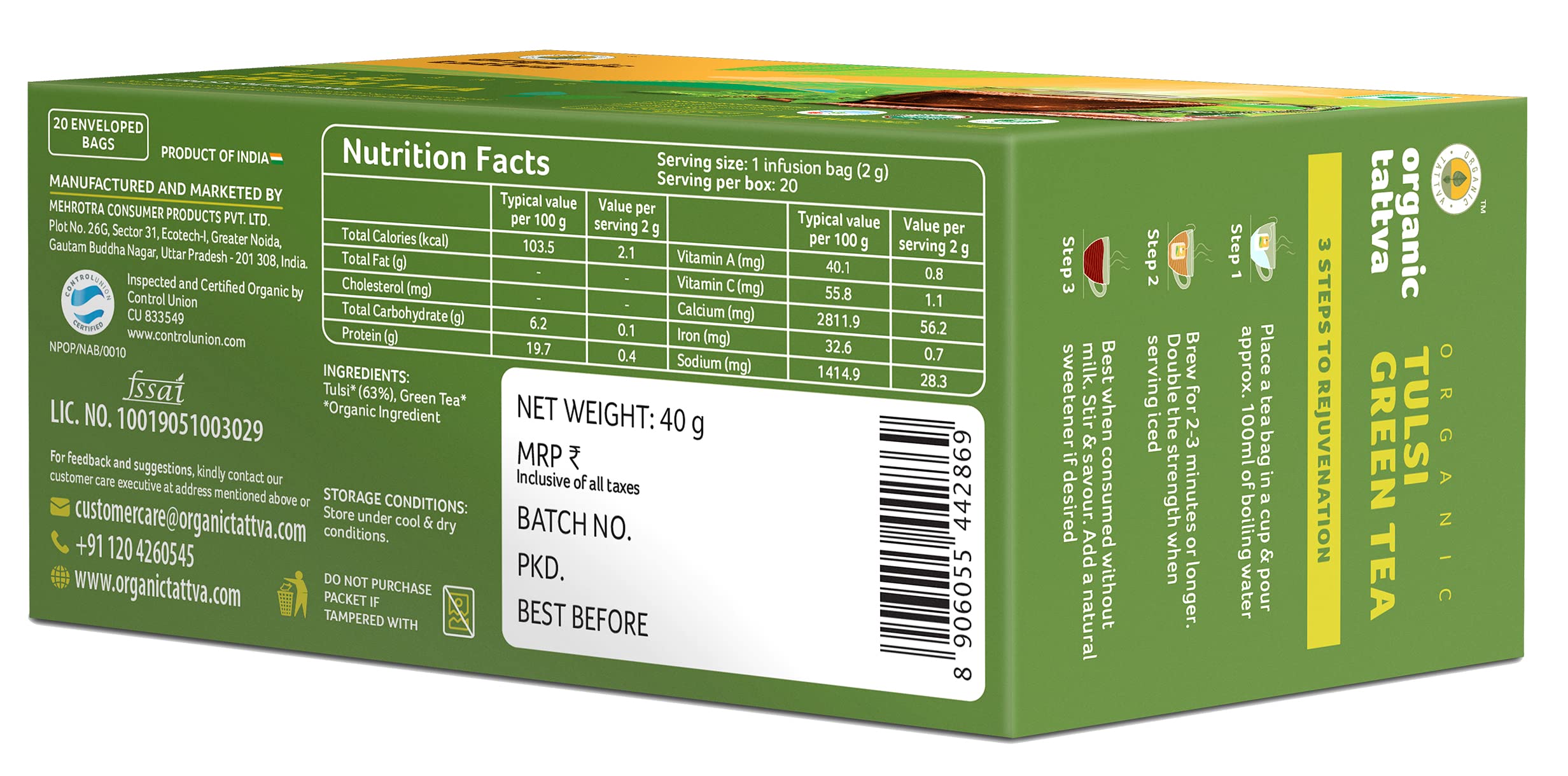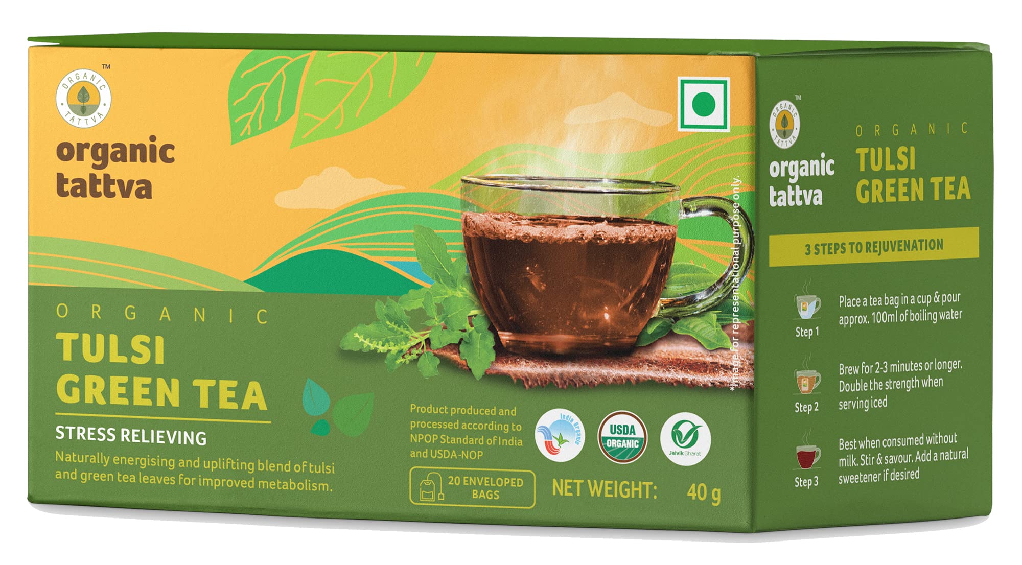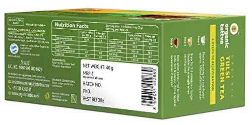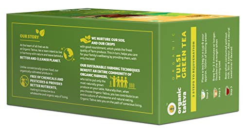 Organic Tattva, Organic Tulsi Green Tea 20 Tea Bags | For Immunity Boosting & Sore Throat Prevention | Contains Vitamin C and Antioxidants | Caffeine Free