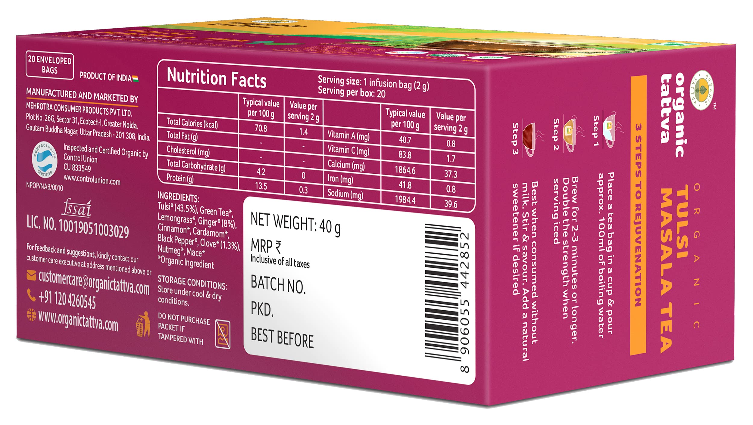 • Organic Tulsi Masala Tea has spices with anti-inflammatory properties which helps build immunity while perking up your energy levels when consumed