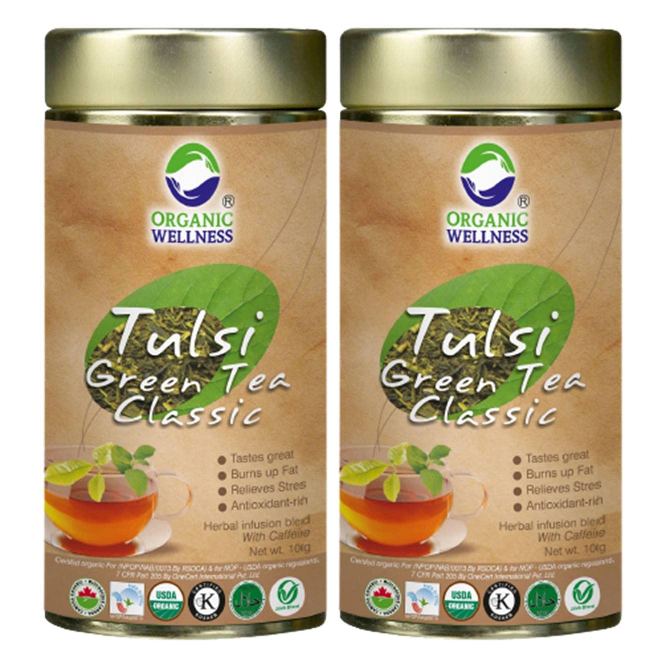 Organic Wellness tulsi green tea classic - stress relieving & refreshing - contains natural good for health herbs. Tulsi (three types Krishna Vana and Rama) and green tea promotes healthy metabolism which is vital to manage weight or weight loss. Both tulsi and green tea provides vast array of remarkable health benefits including an abundance of antioxidants which eliminate damaging free radicals in the body. Our amazing combination refreshes and tastes wonderful and don't have bitter taste. Throughout India tulsi (also known as holy basil) is considered the queen of herbs and is revered as a sacred plant infused with healing powers. Traditionally grown in an earthen pot in every family home or garden tulsi's remarkable life-enhancing qualities repeatedly noted in ancient Indian scriptures dating back over 5 000 years are nowhere for you to fully enjoy the taste and it's healthy benefits.