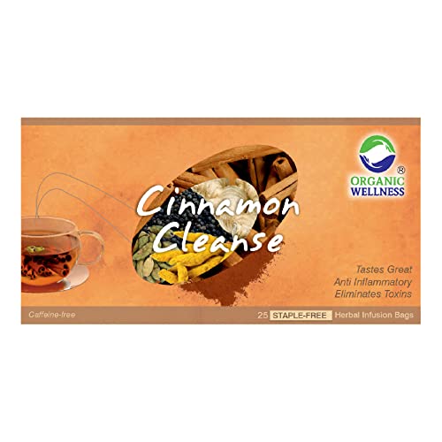 ORGANIC WELLNESS Cinnamon Cleanse Tea | 25 Tea Bags I Herbal Infusion I Ginger & Black Pepper