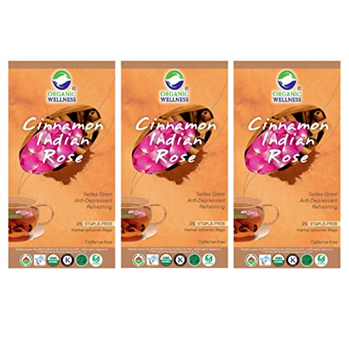 Ow'real cinnamon Indian rose is a refreshing blend of aromatic cinnamon tulsi bay leaves cardamom chamomile peppermint and fragrant Indian rose. Cinnamon and tulsi are rich in antioxidants and help eliminate toxins in the body that cause free-radical damage to the cells. Rose is one of the best natural anti-depressant and together with bay leaves improves skin. Peppermint adds a dash of freshness.