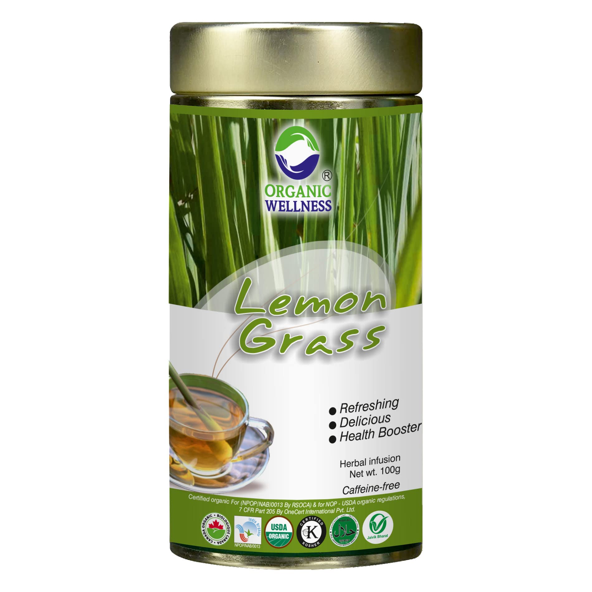 Organic Wellness Lemongrass Tea 100 Gram | Rich in Antioxidant Antimicrobial & Anti-Inflammatory Properties | Reduce Stress Uplift Mood Promote Sleep Relieve Pain & Boost Immunity | Caffeine Free