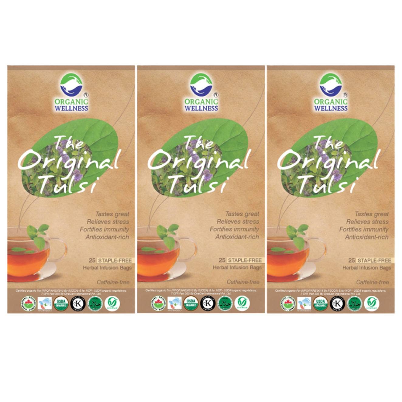 Ow real the original tulsi celebrates the perfect amalgamation of Rama Krishna and Vana three of the purest forms of tulsi! Tulsi is a potent adaptogen and helps your body adapt to stress better. Rich in antioxidants it helps eliminate toxins from the body that cause free-radical damage to cells. Being an effective immunomodulatory tulsi helps fortify the immune system and is effective in relieving common cold cough & other respiratory health disorders.