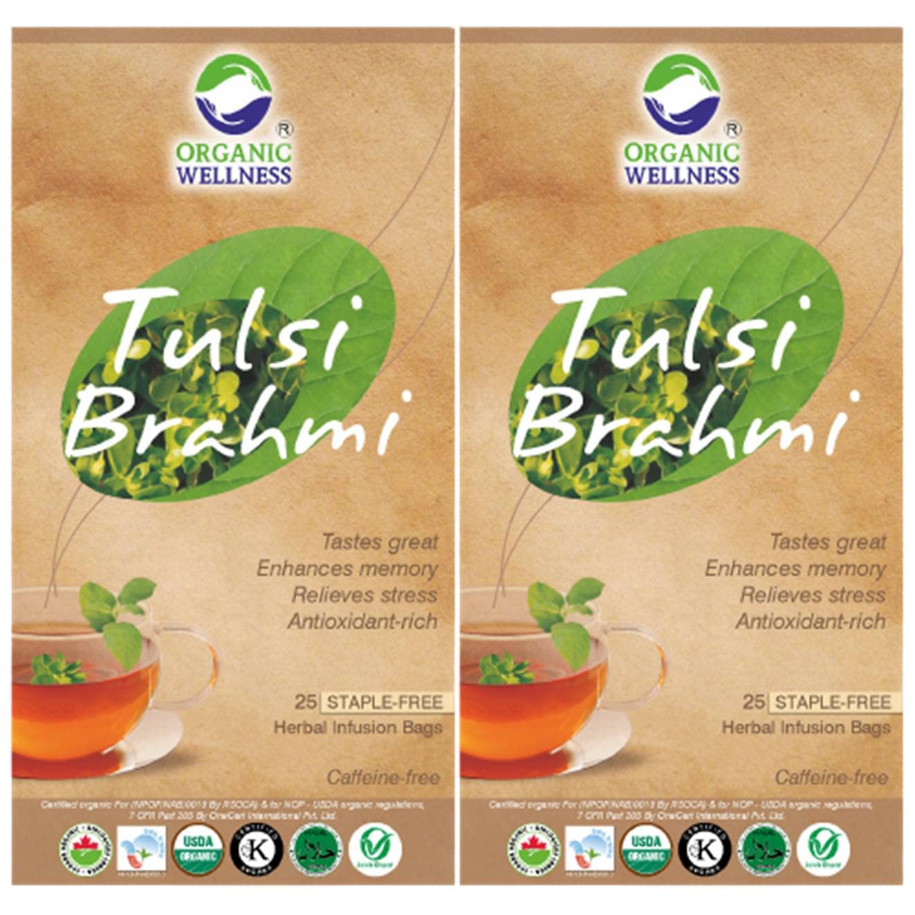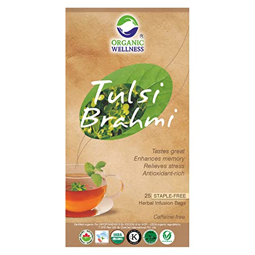 Organic Wellness Tulsi Brahmi Tea | 25 Tea Bags | Pack of 2 Herbal Tea