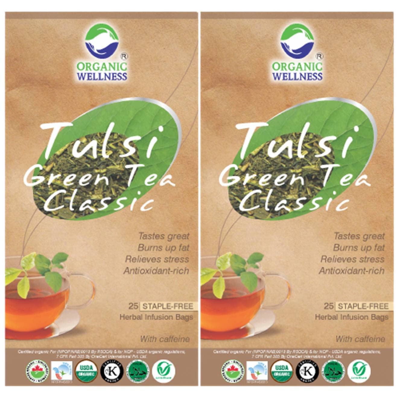 Organic Wellness tulsi green tea classic - stress relieving & refreshing green tea contains natural herbs good for health. Both tulsi and green tea promote healthy metabolism which is vital to weight management. Both offer a vast array of remarkable health benefits including an abundance of antioxidants which eliminate damaging free radicals in the body. This amazing combination refreshes and tastes wonderful. Drink up and enjoy.
