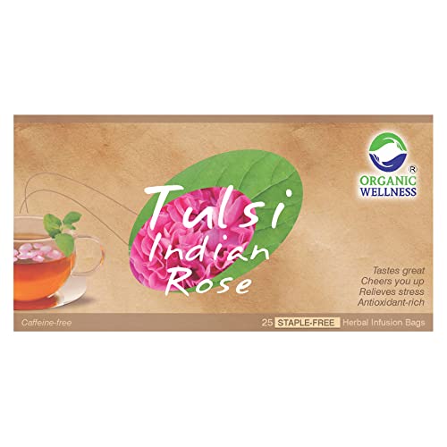 Organic Wellness Tulsi Indian Rose Tea Bags | 25 Tea Bags Organic Natural Tulsi Tea Bags