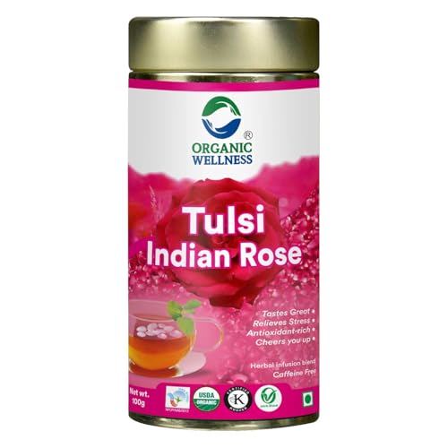 HomeGroceryBeveragesTeaOrganic Wellness Tulsi Indian Rose Tea Tin Pack (100 Gm) | Made With Tulsi & Fragrant Indian Rose | Rich In Antioxidants | Stress Reliever | Immunity Booster | Good For Skin (Pack of 1)