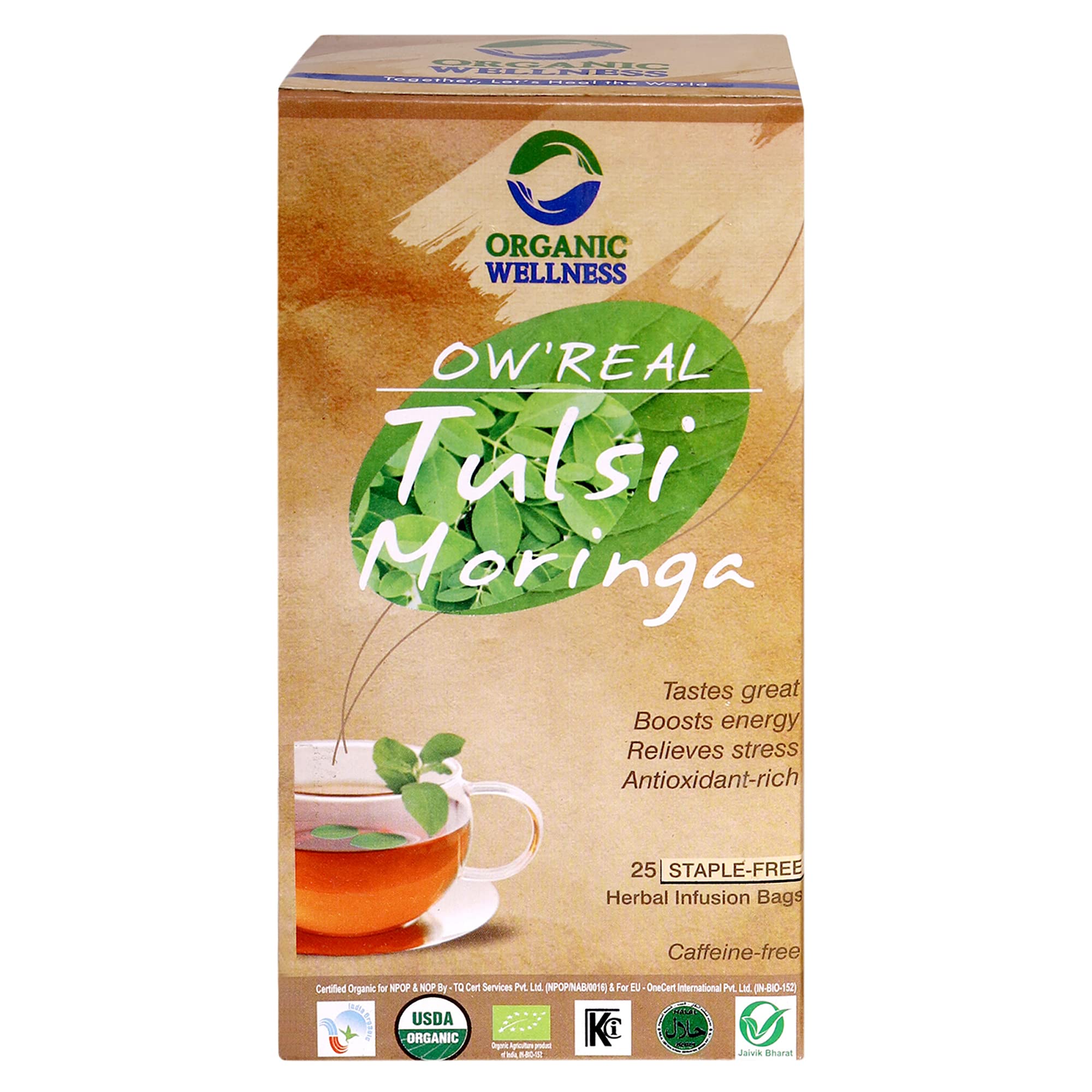 Organic Wellness Tulsi Moringa 25 Teabags | Sahjan | Drumstick Leaf Powder for Weight Loss