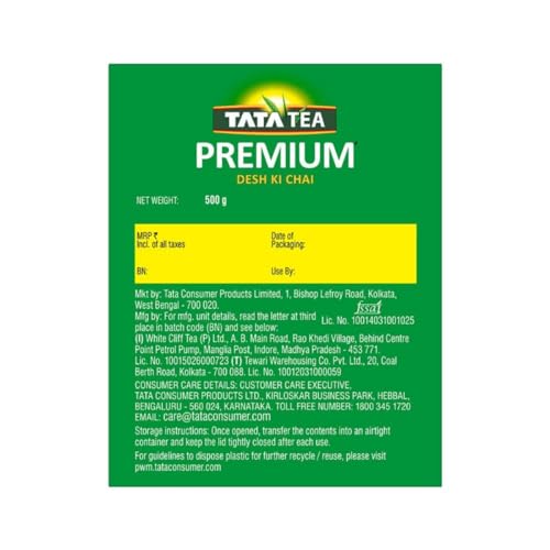 Chai is more than a cup of tea; rather it is an integral part of the culture and life of every Indian. While drinking chai is enjoyed across the country the way people like their cup in India varies across regions. Tata Tea Premium- Desh ki Chai sourced solely from India understands these varying taste preferences and hence our tea experts have crafted a unique blend that chai lovers across India will enjoy. Blended since 1985. Storage Instructions: Once opened transfer the contents into an airtight container and keep the lid tightly closed after each use.