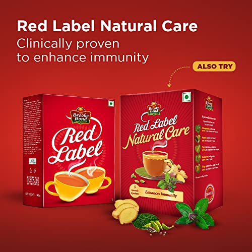 Brooke Bond Red Label is one of Indias largest selling packaged tea brands. Brooke Bond Red Label Tea is a blend CTC tea with best quality leaves; processed in the unique Brooke Bond Tea Excellence Centre .Since 1869 Brooke Bond has brought you the perfect tasting tea experience with the best-chosen leaves. It was in 1903 that Brooke Bond launched âRed Labelâ. That is when Brooke Bond Red Label started worked to create Indias one of most favourite beverage âchaiâ. Every cup of Red Label is brewed with the best-chosen tea leaves; that ensure your tea has strength rich colour and refreshing taste. We believe our tea has the taste of togetherness that gives that perfect taste colour and irresistible aroma. Red Label is all about coming together over a warm cup of tea with everyone arounds. It is the âSwad Apnepan ka (Taste of Togetherness). Brooke Bond Red Label stands for inclusiveness and making world a better place one cup at a time.. Enjoy the great tasting range from Red Label Core and Red Label Natural Care; that has a mix of 5 Ayurvedic ingredients namely Tulsi Ashwagandha Mulethi Ginger and Cardamom. Red Label Natural Care is clinically proven to enhance immunity and help you fall ill less often.