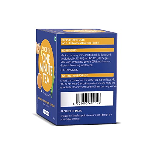 • Brew a strong cuppa rich in taste with Society One Minute Tea Ginger Lemongrass flavour
